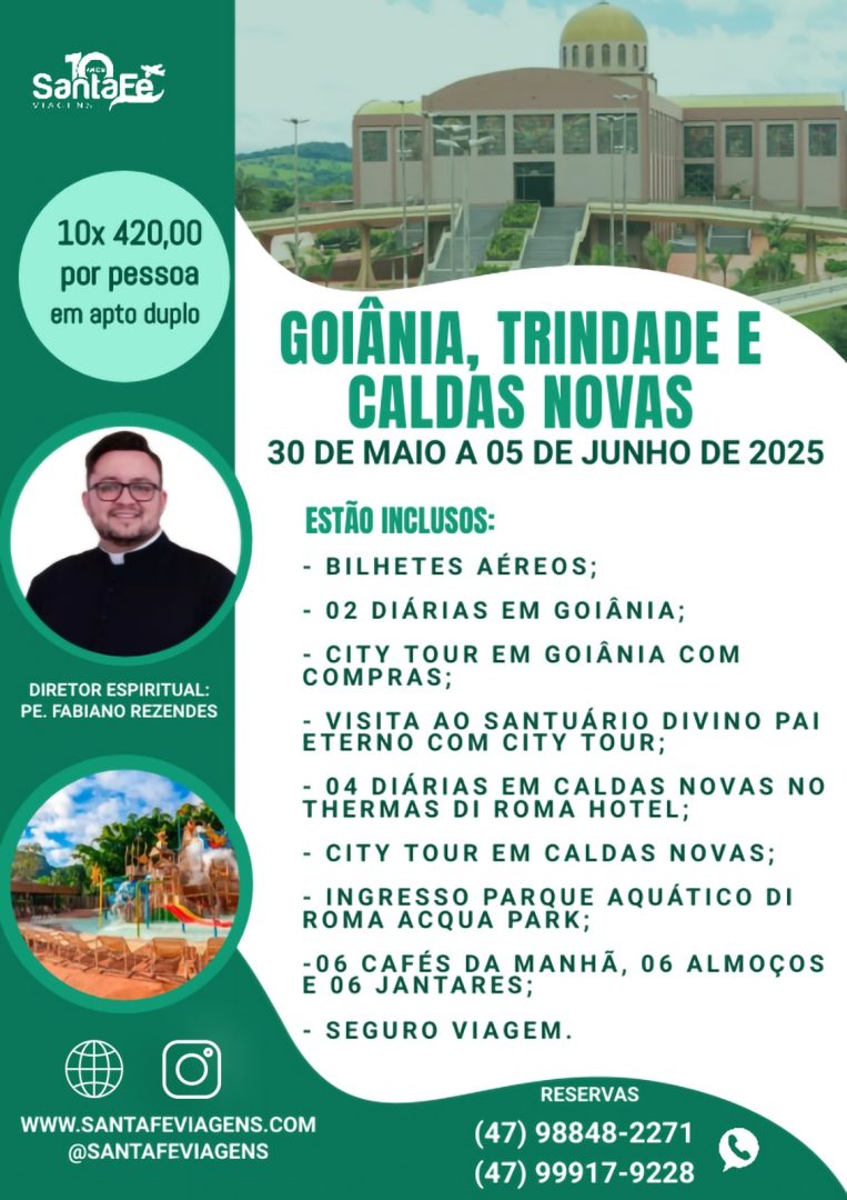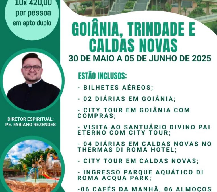 GOIÂNIA, TRINDADE E CALDAS NOVAS – 30 DE MAIO A 05 DE JUNHO