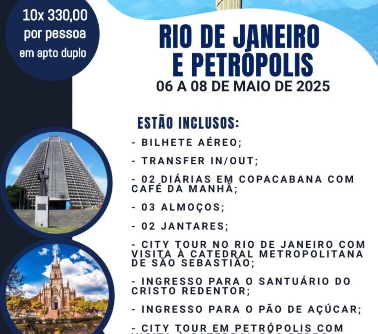 Compartilhar Ver Também11 de novembro de 2024FOZ DO IGUAÇU – 03 A 06 DE DEZEMBRO+ INFORMAÇÕES11 de novembro de 2024FORTALEZA – 26 A 30 DE NOVEMBRO+ INFORMAÇÕES25 de setembro de 2024RECIFE, OLINDA, PORTO DE GALINHAS, MARAGOGI E MACEIÓ – 06 A 11 DE SETEMBRO+ INFORMAÇÕES